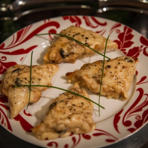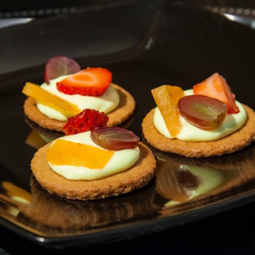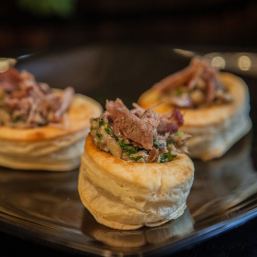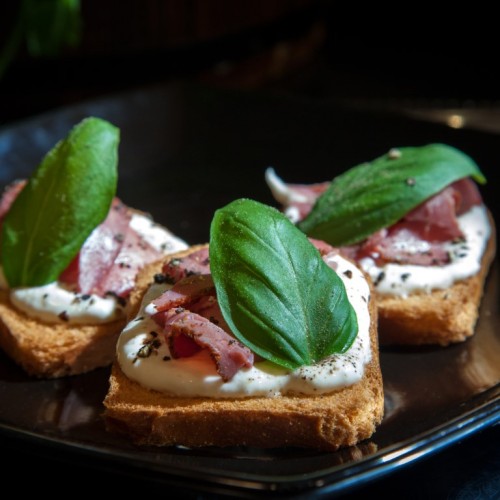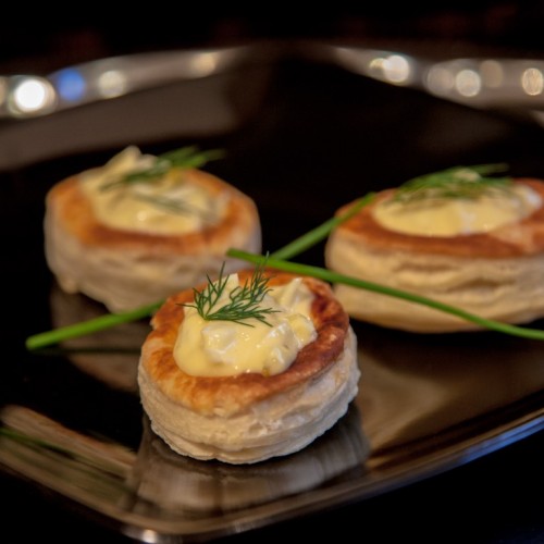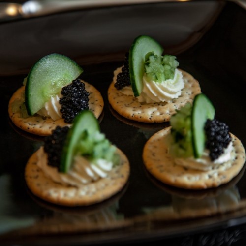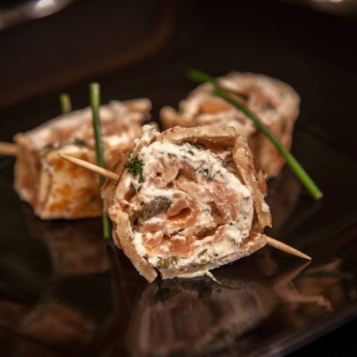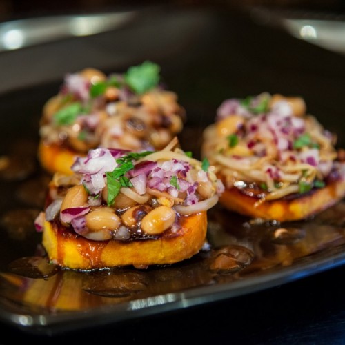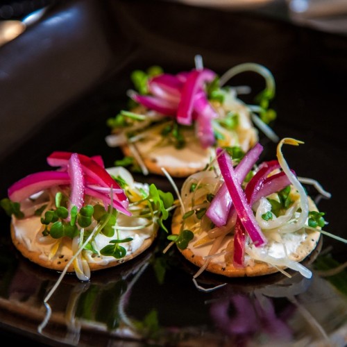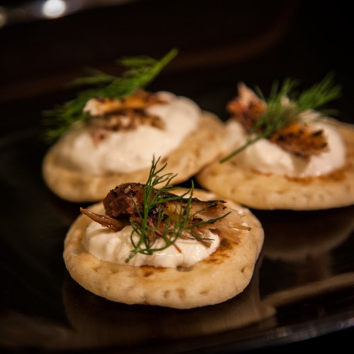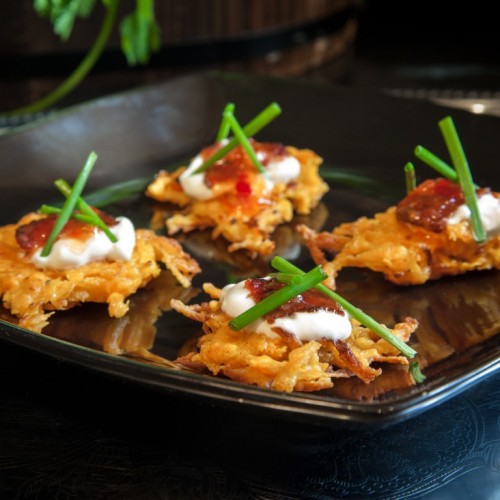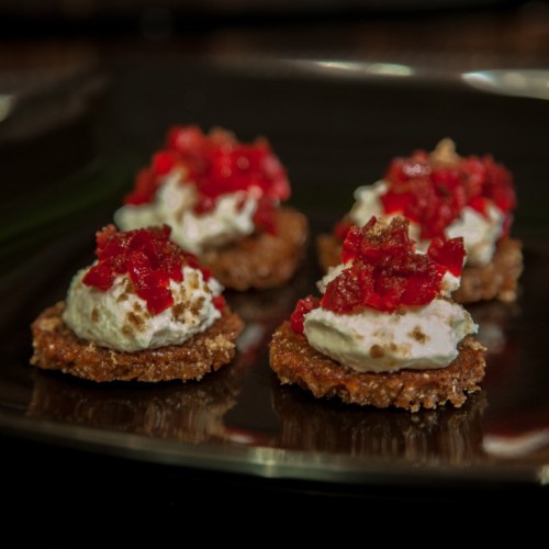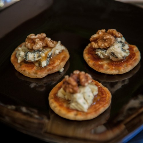 Parsnip Blinis with Blue Cheese, Walnuts & Honey