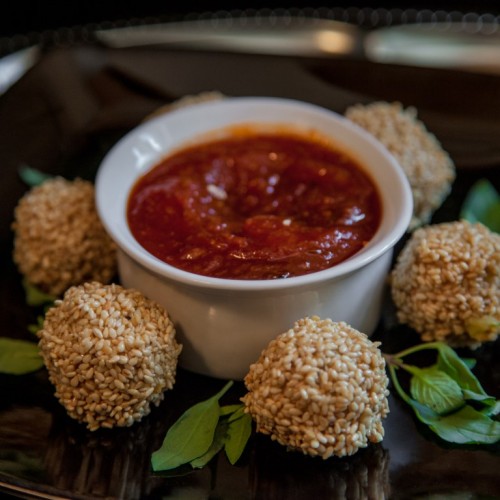 Sesame & Cheddar Croquettes with Tomato Chilli Jam