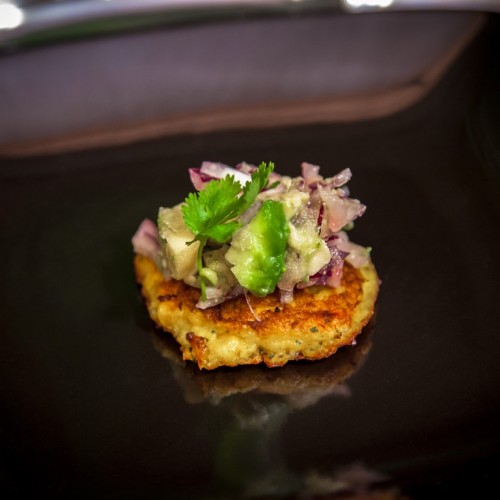 Sweetcorn & Red Chilli Cakes with Avocado Salsa