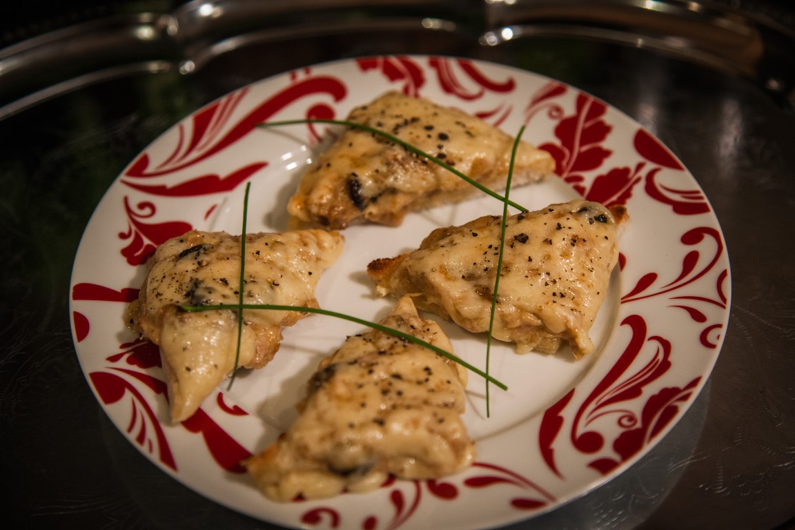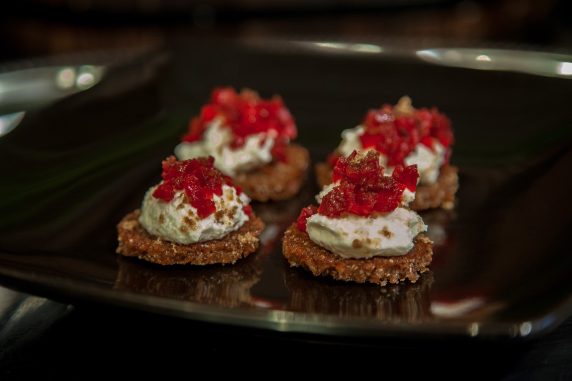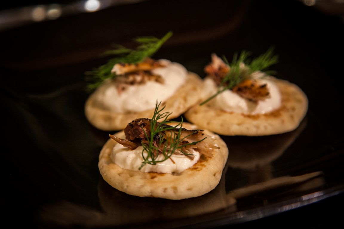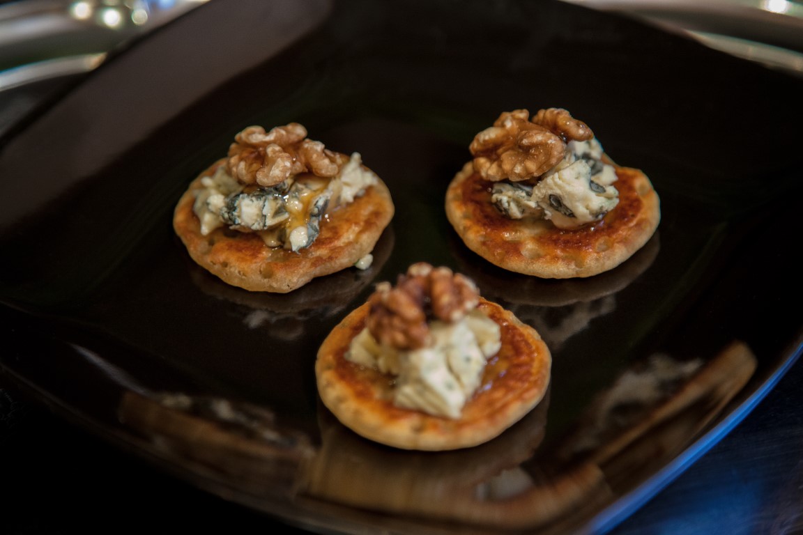 Parsnip Blinis with Blue Cheese, Walnuts & Honey
