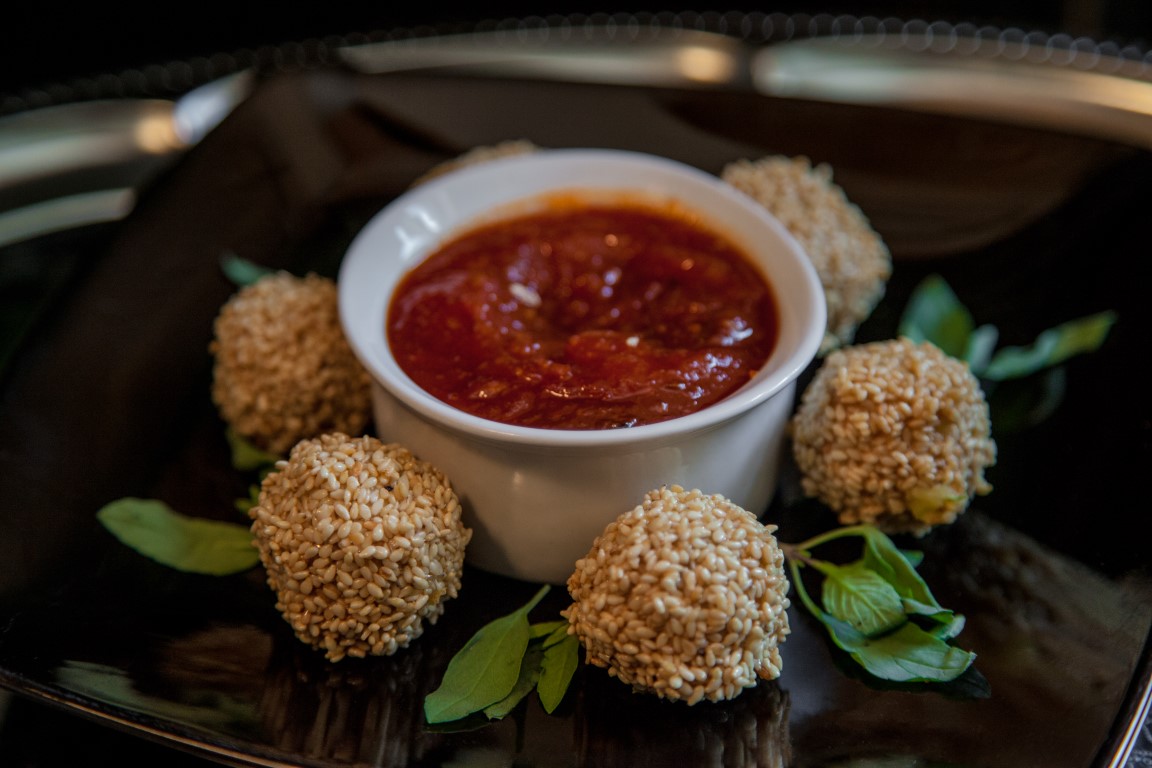 Sesame & Cheddar Croquettes with Tomato Chilli Jam